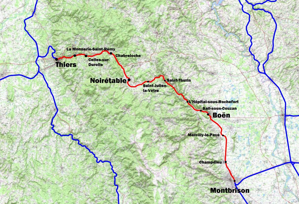 Update 2019: Der zum 1. Juni 2016 geschlossene Teil Boën – Montbrison wurde inzwischen wiedereröffnet.