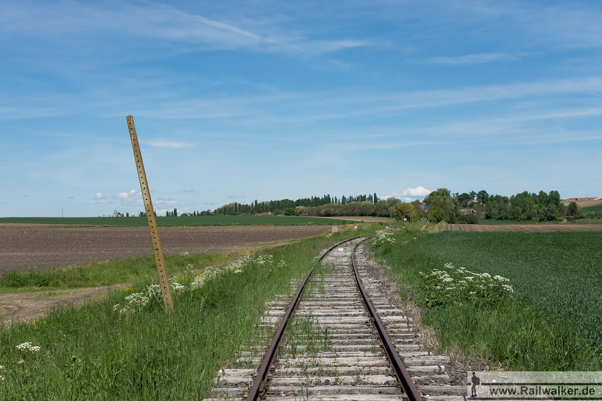 Am 16. Mai 2017 führte mich meine Reiseroute nach Vertaizon. Die kurze Sekundärbahn nach Billom liegt an der Strecke von Clermont-Ferrand nach Saint Etienne. Die nur 9 Kilometer lange Stichstrecke wurde 1875 eröffnet. Betreiber war die Société anonyme du chemin de fer de la sucrerie de Billom. 1902 übernahm die Compagnie du chemin de fer de Vertaizon à Billom die Betriebsführung. Im Jahr 1939 übernahm dann die Compagnie des chemins de fer de la Limagne und im Jahr 1969 schließlich übernahm die SNCF die Führung. In den Anfangsjahren kamen drei Dampflokomotiven vom Typ 030t zum Einsatz. In späteren Jahren folgten Dieselloks der SNCF. Für das Jahr 1897 sind 4 täglich Züge angegeben, die im Durchschnitt 50t Waren und 180 Reisende beförderten. Der Personenverkehr endete im Jahr 1964. Im darauffolgenden Jahr wurde der Transport von Zuckerrüben auf die Straße verlagert. Ende der 70er Jahre wurde der Oberbau der Strecke nochmals komplett erneuert.