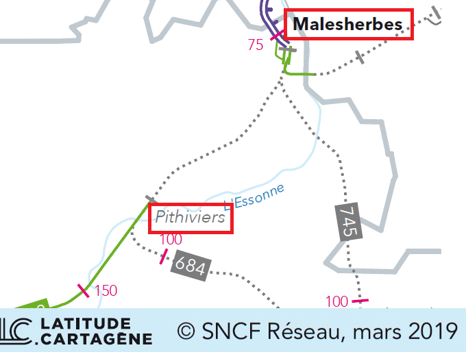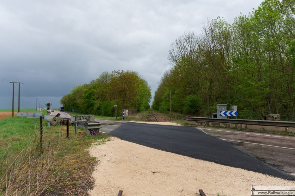 Die Bahnverbindung zwischen den Städten Malesherbes und Pithiviers ist 18,6 Kilometer lang. Die Eröffnung fand im Jahr 1872 statt, etwas verzögert durch den Krieg von 1870/71. Die Linie war durchgehend zweigleisig. Der Personenverkehr wurde bis 1969 aufrechterhalten und danach durch eine Buslinie ersetzt. Von da an wurde die Linie nur noch für den Güterverkehr verwendet. Bei meinem Besuch im April 2019 lag die Fahrt des letzten Güterzuges bereits einige Jahre zurück. Auf der Streckenkarte der SNCF ist die Linie noch gestrichelt eingezeichnet, d.h. sie ist nicht stillgelegt. Einen planmäßigen Zugverkehr gibt es nicht mehr und auch der Unterhalt der Strecke scheint eingestellt worden zu sein. Das zweite Streckengleis wurde zurückgebaut. Wann genau, konnte ich bisher noch nicht herausfinden.