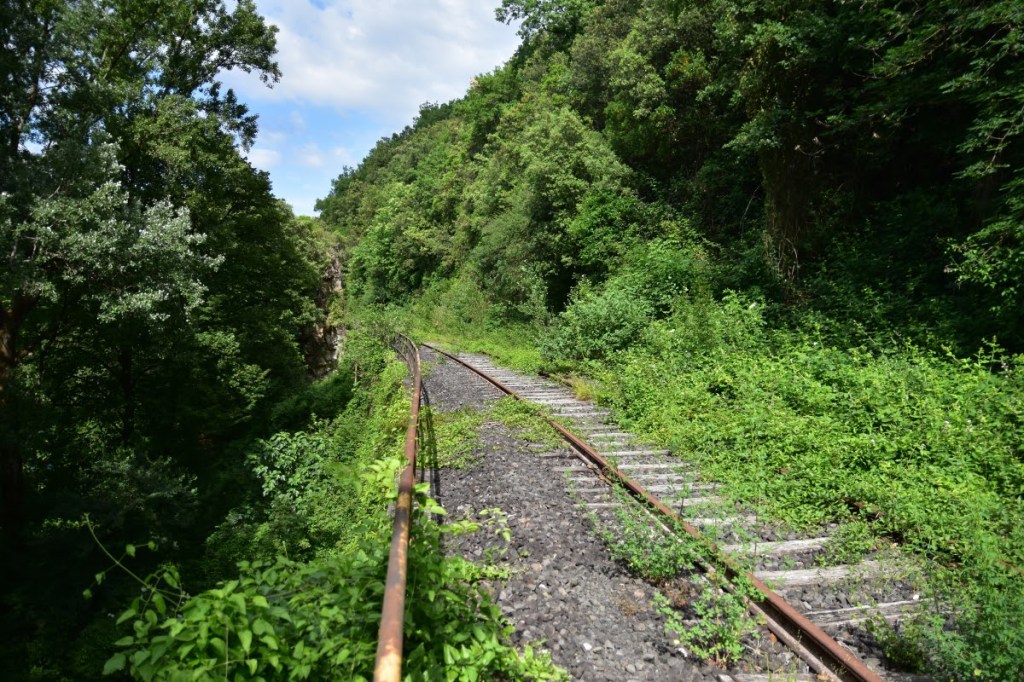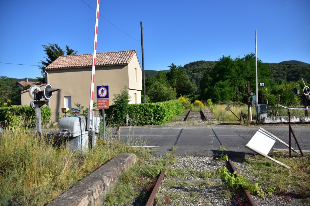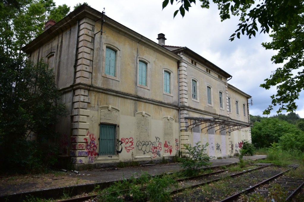 Nach meiner Ankunft in Besseges wanderte ich noch für 3 Tage auf einer abzweigenden, durch die touristisch sehr aktive Region Ardeche, bis kurz vor Le Teil. Auf dieser ehemaligen Bahnstrecke ist zum größten Teil an Radweg errichtet worden. Der Radweg wird aktuell weiter ausgebaut. Durch den Radweg war es zwar einfach auch bei hoher täglicher Marschleistung stets auf der Bahnstrecke zu bleiben, viel zu entdecken gab es jedoch nicht mehr. Letzlich blieben nur manche Brücke und die Bahnhofsgebäude der einzelnen Orte als letzte Zeugen der Bahnlinie sichtbar. Die letzten knapp 10 Kilometer vor Le Teil sind znoch mit Schienen versehen, jedoch bereits start verkrautet. Vielleicht wird der Radweg später mal auf diesen Abschnitt ausgedehnt. Diesen zugewachsenen und unwegsamen Streckenabschnitt kurz vor Le Teil mußte ich leider auslassen. In den Monaten April oder Mai käme man hier wohl noch durch. Im Hochsommer dagegen war dies kaum noch möglich.