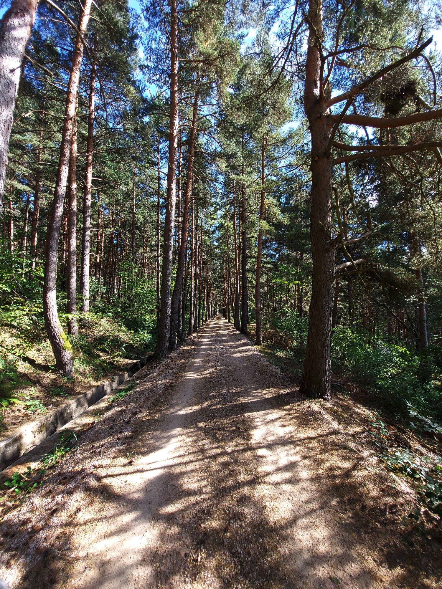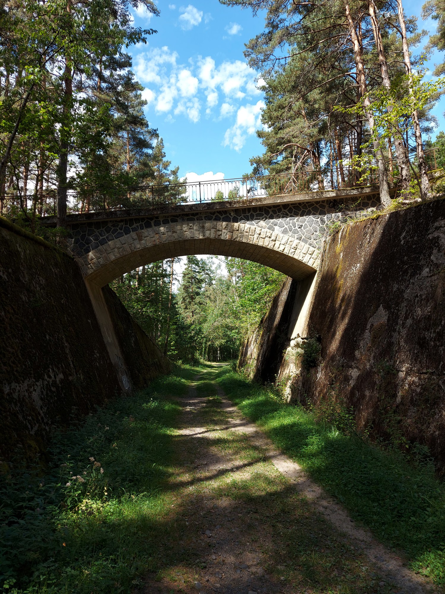 Die fertiggestellte Trasse der nie eröffneten Strecke ist heute ein angenehmer Wanderweg, der überwiegend durch den Wald führt.