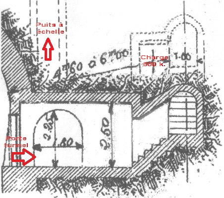 In einer der Tunnelnischen befindet sich der Zugang zu den Sprengkammern.
