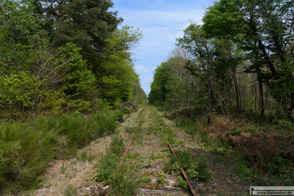 Wenn Gebüsche und Dornen gerade nicht störten, war das Wandern auf dieser Strecke besonders angenehm, da hier kein bahn typischer Schotter verwendet wurde. Stattdessen ist die Bahnstrecke fast ausnahmslos in feinem Kies gebettet, was für einen wesentlich weicheren Boden sorgt. Erst ab Les Bordes stand ich mehrfach vor unüberwindbaren Dornengebüschen.