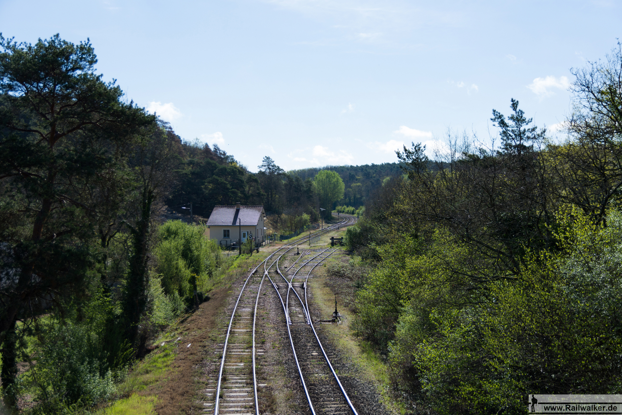 Die Anreise erfolgt mit Umstieg über Paris. Malesherbes ist seit einigen Jahren an den elektrischen Vorortverkehr von Paris angebunden, die Zugdichte ist recht dicht. Der Fahrdraht ermöglich in Malesherbes noch ein Umsetzen der Züge. Die drei in den südlichen raum führenden Strecken waren früher alle zweigleisig und ihr Bau konnte in Folge der flachen Topografie mit einfachsten Mitteln erfolgen. Durch die dünne Besiedlung sind die drei kleinen Linien alle samt nach und nach gestorben. Nur auf der von mir besuchten Strecke gibt es noch einen kleinen Rest-Güterverkehr bis nach Roncevaux, also auf den ersten 5 Kilometern. Entlang der Strecke gibt es keine nennenswerten Bauwerke die eine besondere Betrachtung verdienen. Beim Bau der Eisenbahnstrecke im Zeitraum 1879 – 1881 mußten lediglich ein paar Dämme oder Einschnitte erstellt werden und es wurden ein paar Brücken errichtet. Der Abschnitt weiter ab La Chapelle-la-Reine in Richtung Osten ist seit dem Jahr 1950 nicht mehr befahren worden. Hier war es oft nicht möglich der Trasse direkt zu folgen, die Vegetation war leider zu stark.