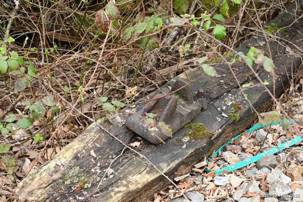 Der Oberbau kann mit gutem Gewissen als desolat beschrieben werden. Überall wurde im klein-klein geflickt und repariert, aber es waren nie große Summen oder umfassende Arbeiten, die ausgeführt wurden. Altes Material wie die Holzschwellen wurden nach dem Ausbau an den Rand gelegt und sich selbst überlassen. Besonders viel Altmaterial geht auf die frühere Ausstattung mit Stuhlschienen zurück. Deren gusseiserne Schienenstühle überall verstreut herumliegen, mitunter auch noch an die Schwellen geschraubt zu finden sind.