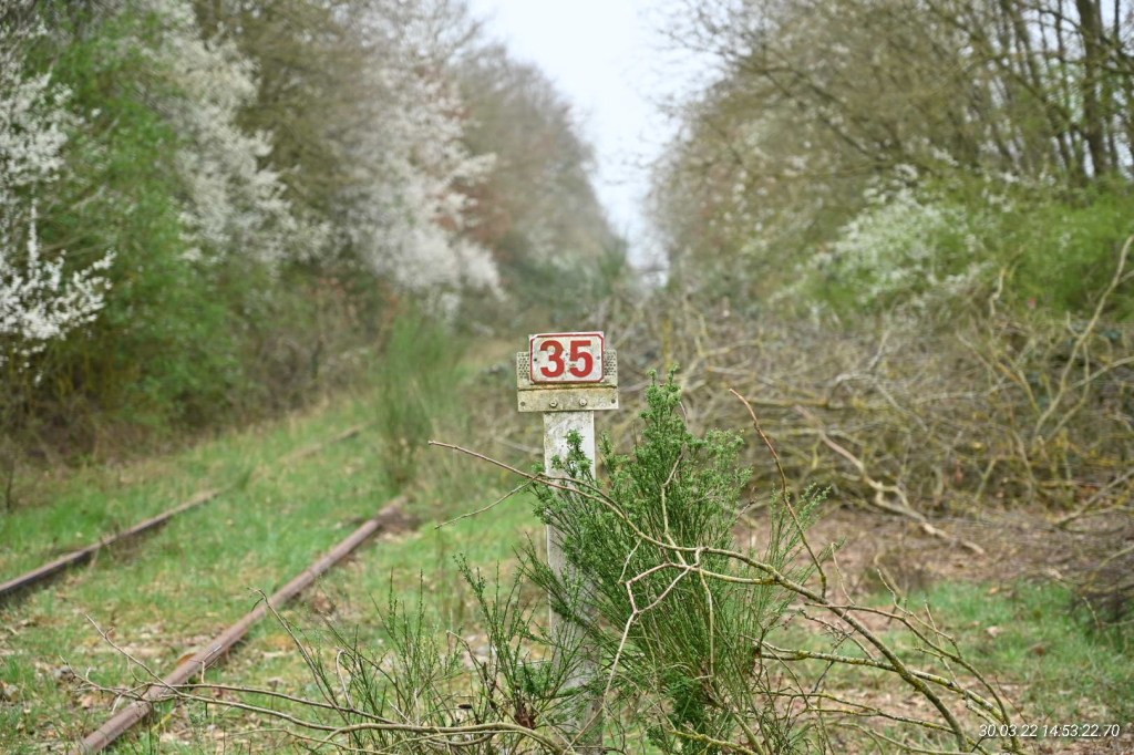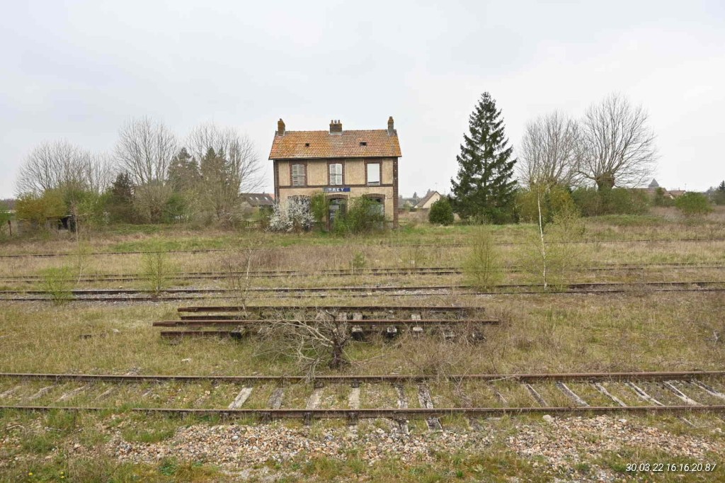Nachdem vom Unterwegsbahnhof Prey eine weitere Strecke über Damville nach La-Loupe erbaut wurde (Bauzeit 1886 – 1889), erfolgte beim Streckenteil Saint-Aubin-du-Vieil-Évreux nach Prey die Aufwertung zu einer zweigleisigen Strecke. Bei meinem Besuch im März 2022 war die Linie bereits nicht mehr zweigleisig gewesen, da dieser Ausbau schon 1944 wieder rückgängig gemacht wurde.