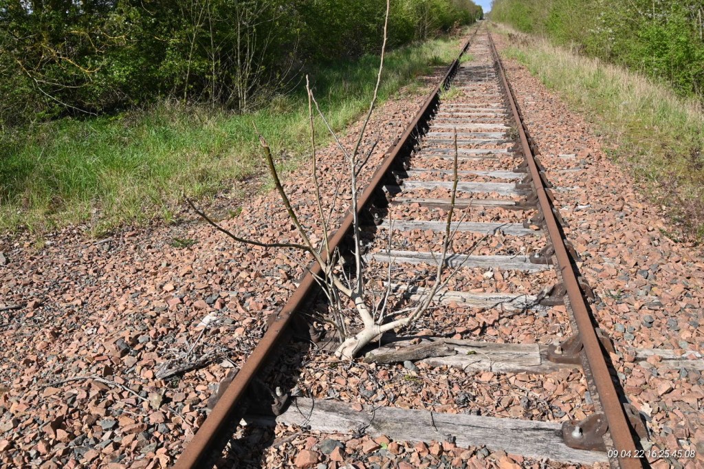 Werden wir diesen Trieb noch ein paar Jahre ungestört wachsen lassen, haben wir hier bald einen Baum im Gleis stehen.