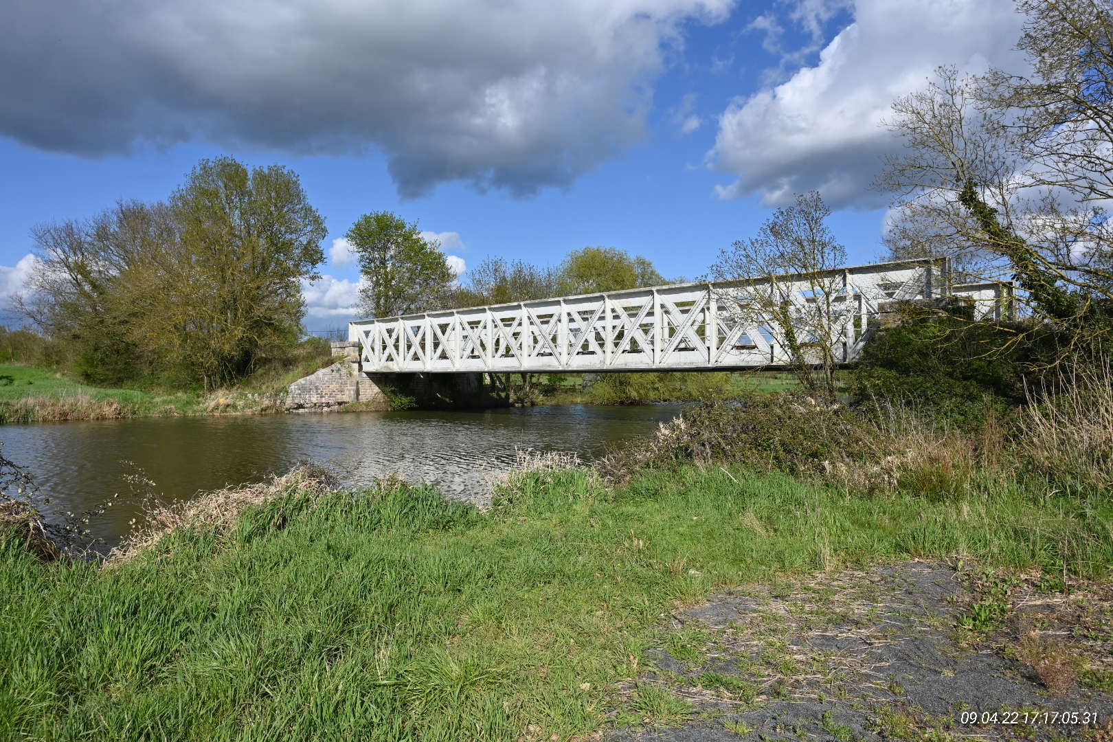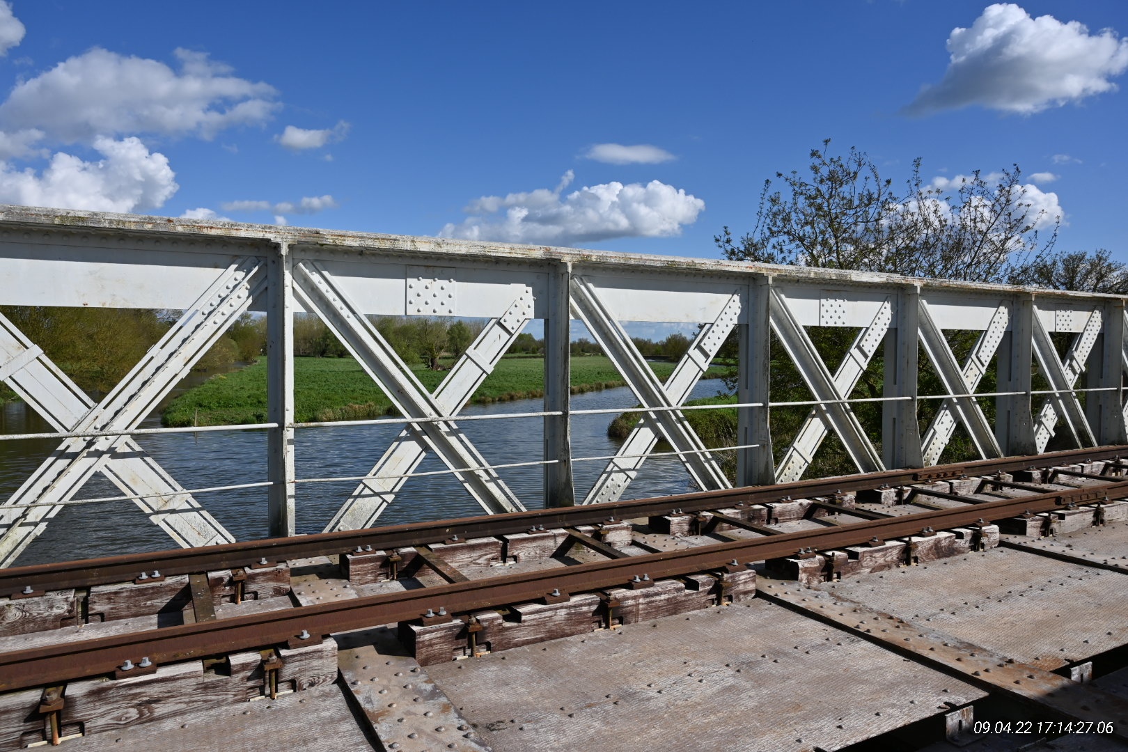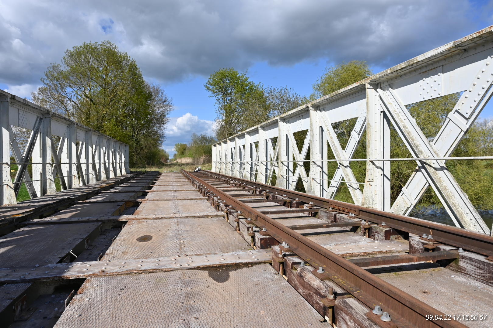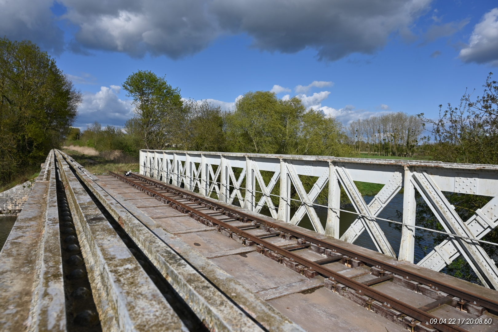 Fünf Kilometer hinter Saumur führt die Bahnstrecke bei Streckenkilometer 280,462 über die 37m lange Brücke „Pont sur l’Authion„. Der letzte Anstrich der genieteten Stahlträger erfolgte im Jahr 1986 in weißer Farbe. Leider war nirgends eine Plakette der herstellenden Firma zu finden. Die genietetenStahlplatten lassen darauf schließen, dass die Brücke noch aus den 1880er Jahren stammt. Auch hier waren Vorkehrungen für einen zweigleisigen Ausbau getroffen worden, der jedoch nie umgesetzt wurde.