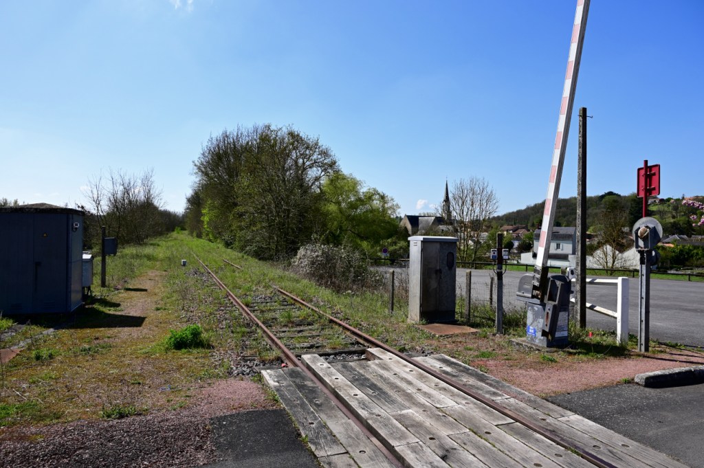 Bei Bahnübergang 288 treffe ich überraschend auf einen kleinen Bahnsteig. Offensichtlich hat sich hier früher ein Haltepunkt befunden. Am Bahnsteig selbst und auch am Schrankenwärterhaus war allerdings kein Stationsschild mehr zu finden. Nachträgliche Recherche im Internet brachte den Stationsnamen dann doch noch zu Tage: „Grand Moiré