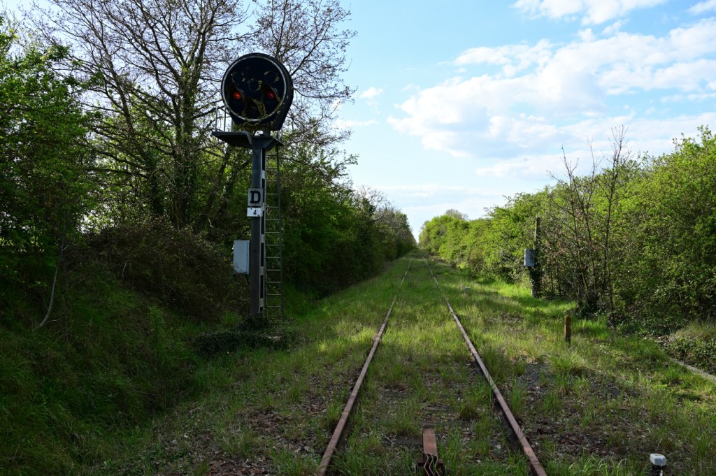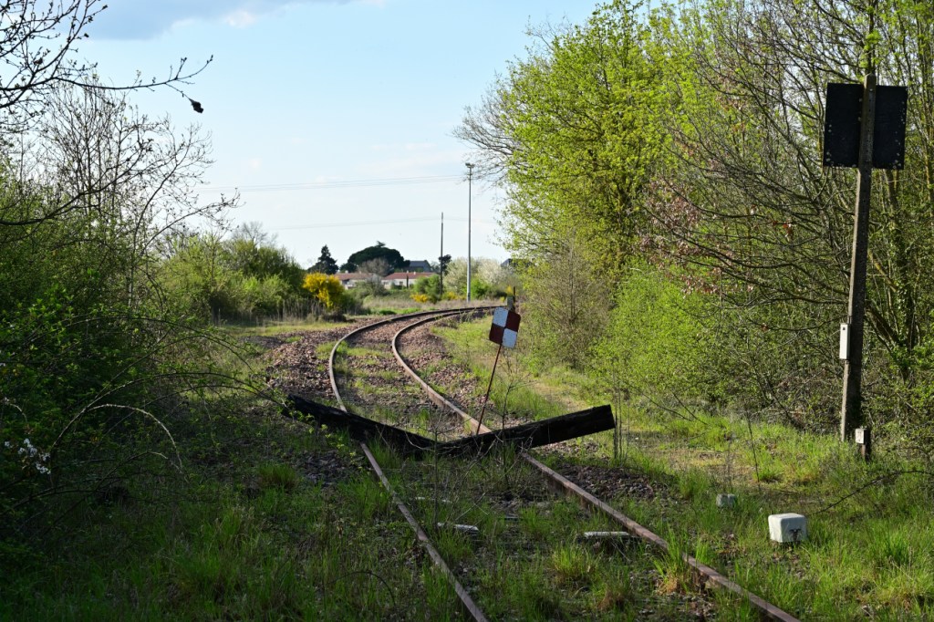 Nach Abschluß der Streckenwanderung mit Erreichen von Saint-Varent, konnte ich ein weiteres Häcken auf meiner to-do Liste setzen. Nach Übernachtung am Sportplatz in Saint-Varent und einem morgentlichen Besuch beim Supermarkt, ging es wieder zurück zur Bahnlinie. Mit dem Bus nach Thouars fahren war wegen des dünnen Fahrplanangebotes eher keine Option. Entlang der Straßen zu wandern war ebenfalls nicht sehr angenehm. So blieb mir der kleine Fußweg neben der Bahntrasse als einzig attraktive Möglichkeit. Durch den Rückbau des zweiten Streckengleises war hier stets ausreichend Platz.