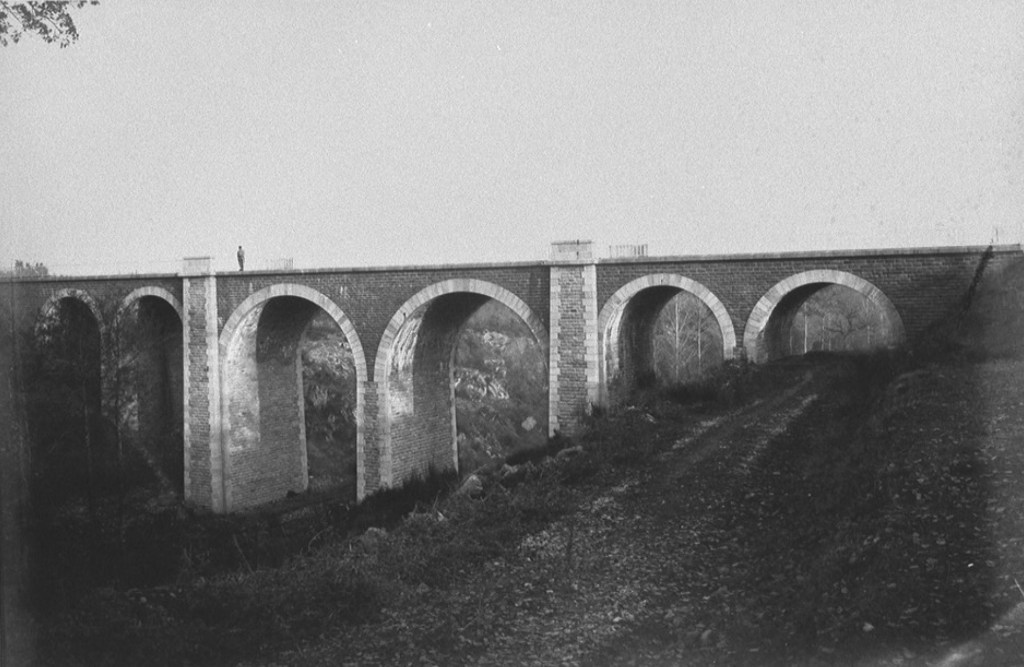Aufnahme vom Viaduc de Conquenuche über den Fluß Thouaret, zwischen den Bahnhöfen Saint-Varent und Saint-Jean-de-Thouars. Aufnahme aus den 1880er Jahren. Bildquelle im Archiv https://gallica.bnf.fr