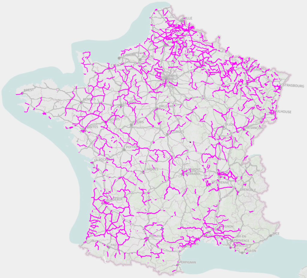 Ein besonders wichtiges Hilfsmittel für meine Arbeit ist die digitale Streckennetz Karte für Frankreich. Zwar bietet die französische Staatsbahn SNCF mit ihrer Netztochter SNCF Reseau eine solche Karte an, doch liegt der Fokus natürlich auf Strecken die noch befahren werden. Bahnlinien, auf denen Verkehr ausgesetzt ist, sind noch auf der SNCF Karte eingezeichnet. Doch erfolgt eine Stilllegung, verschwindet die Strecke beim nächsten Update von der Karte. Wie gelangt man nun an eine grafische Übersicht stillgelegter Strecken? Selber machen lautet die Devise. Zusammen mit anderen Helfern entstand so eine Zusammenstellung aller jemals vorhandenen französischen Eisenbahnlinien. Zusätzliche Ergänzungen bestehen aus den französischen Schmalspurbahnen, hunderten Gleisanschlüßen, Minenbahnen, Industriebahnen, ehemaligen Streckenvarianten, sowie vielen provisorischen Streckenergänzungen aus dem ersten Weltkrieg.